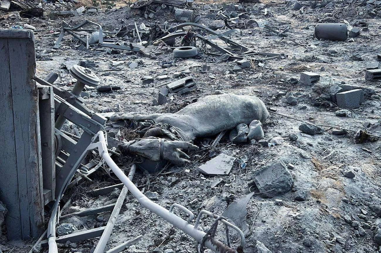 In Gaza, bombings bury animals under rubble, killing pets, livestock and wildlife alike. Farmers report cows and sheep starving or vanishing after shelling; over 90% of cattle have died. Bombing water tanks, feed stores and barns ensures that animals starve alongside humans.